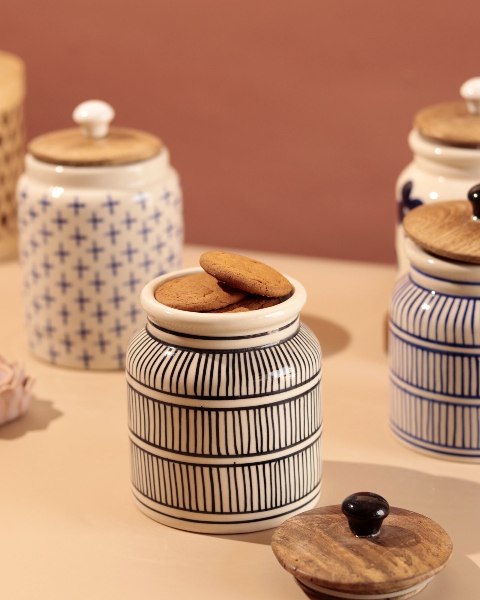 Hand Painted Airtight Jar- Black Bricks