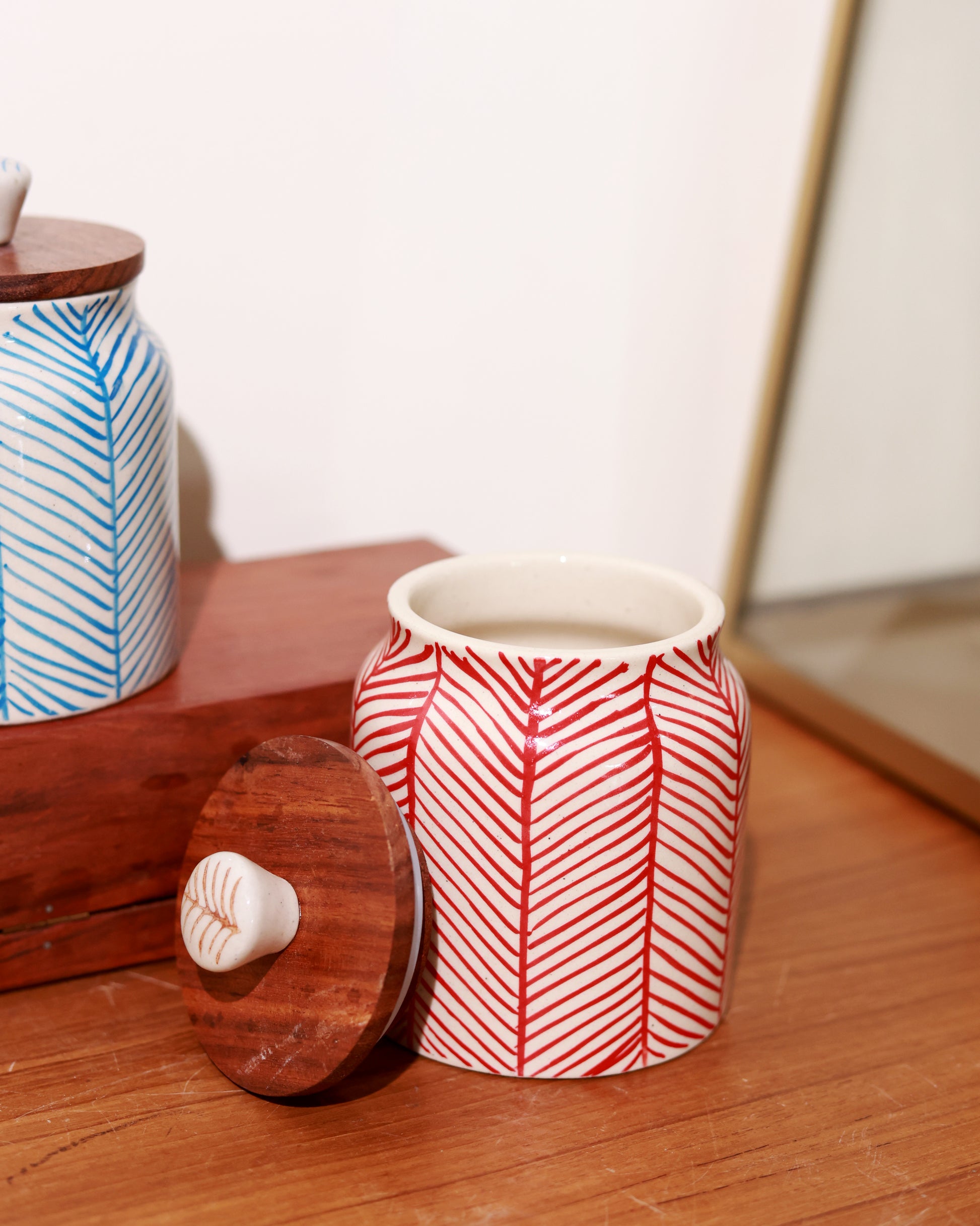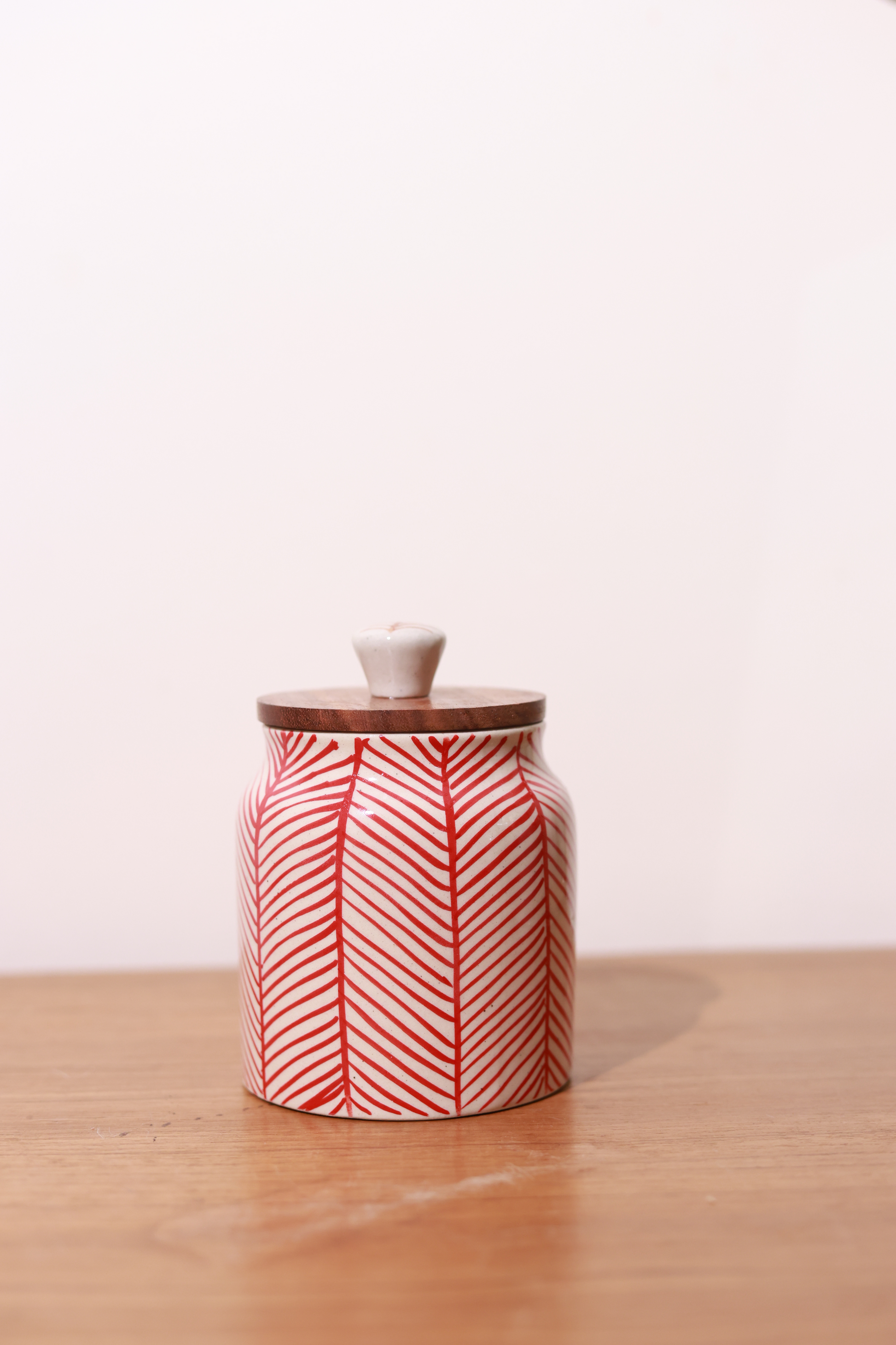 Hand Painted Chevron Airtight Jar with wooden lid (Red)