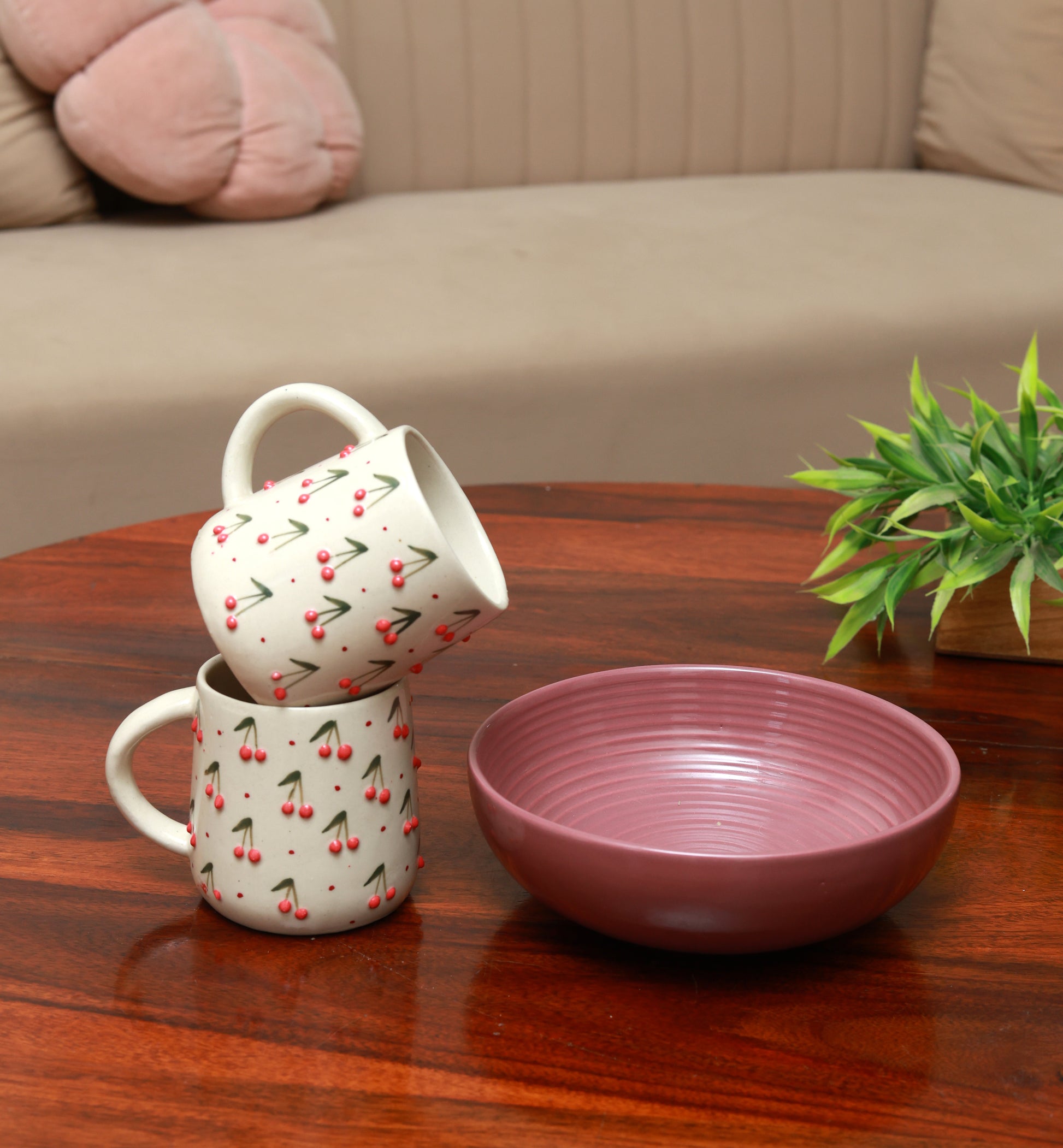 Cherry Mugs & Cranberry Bowl Combo