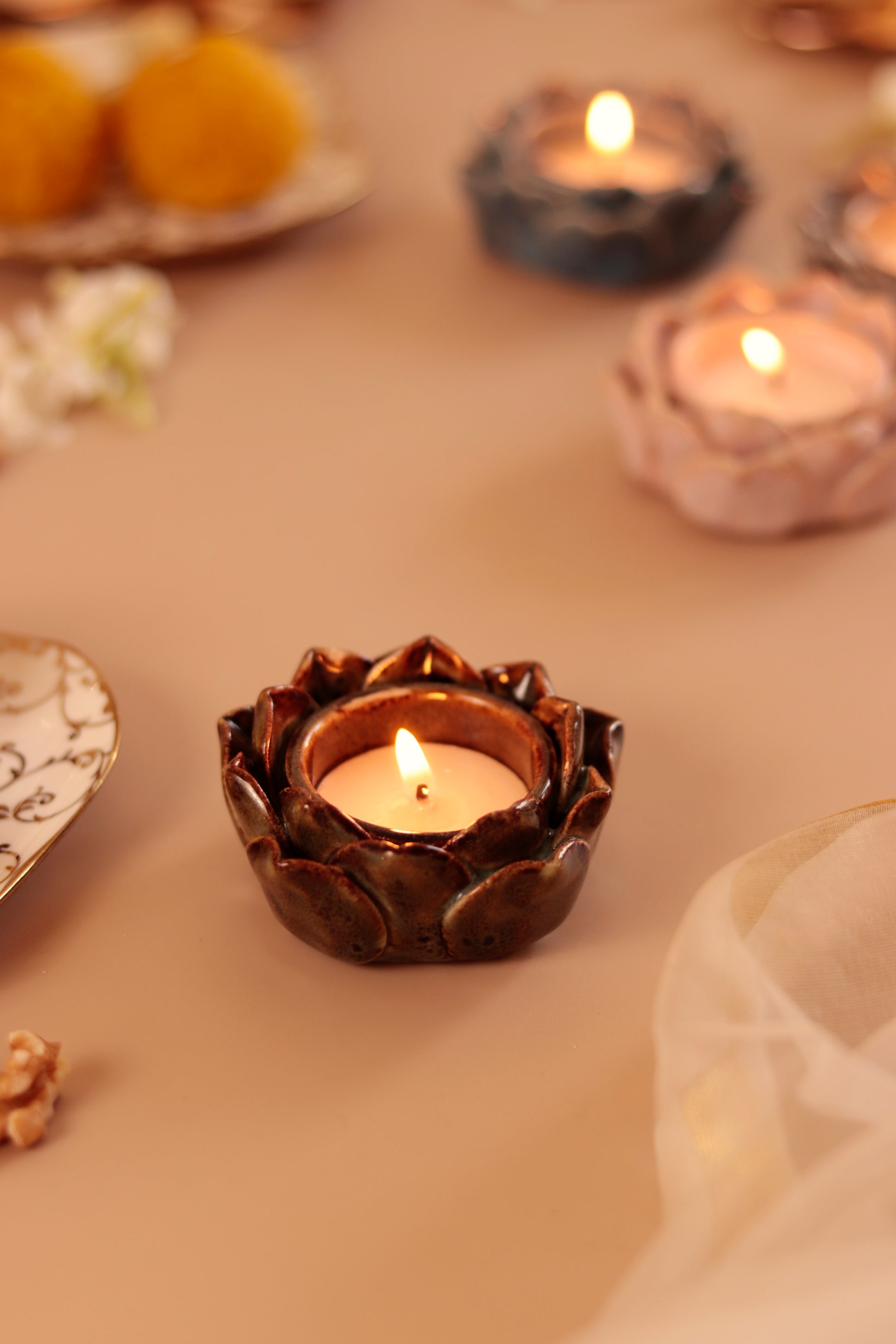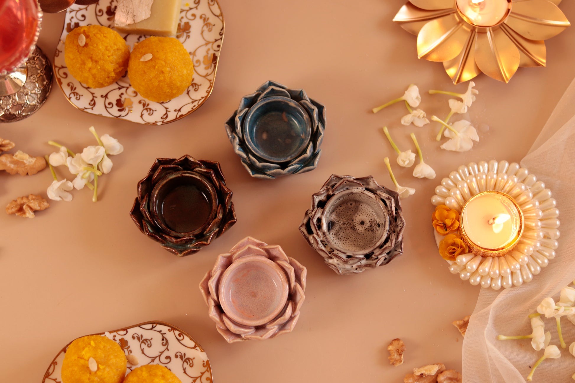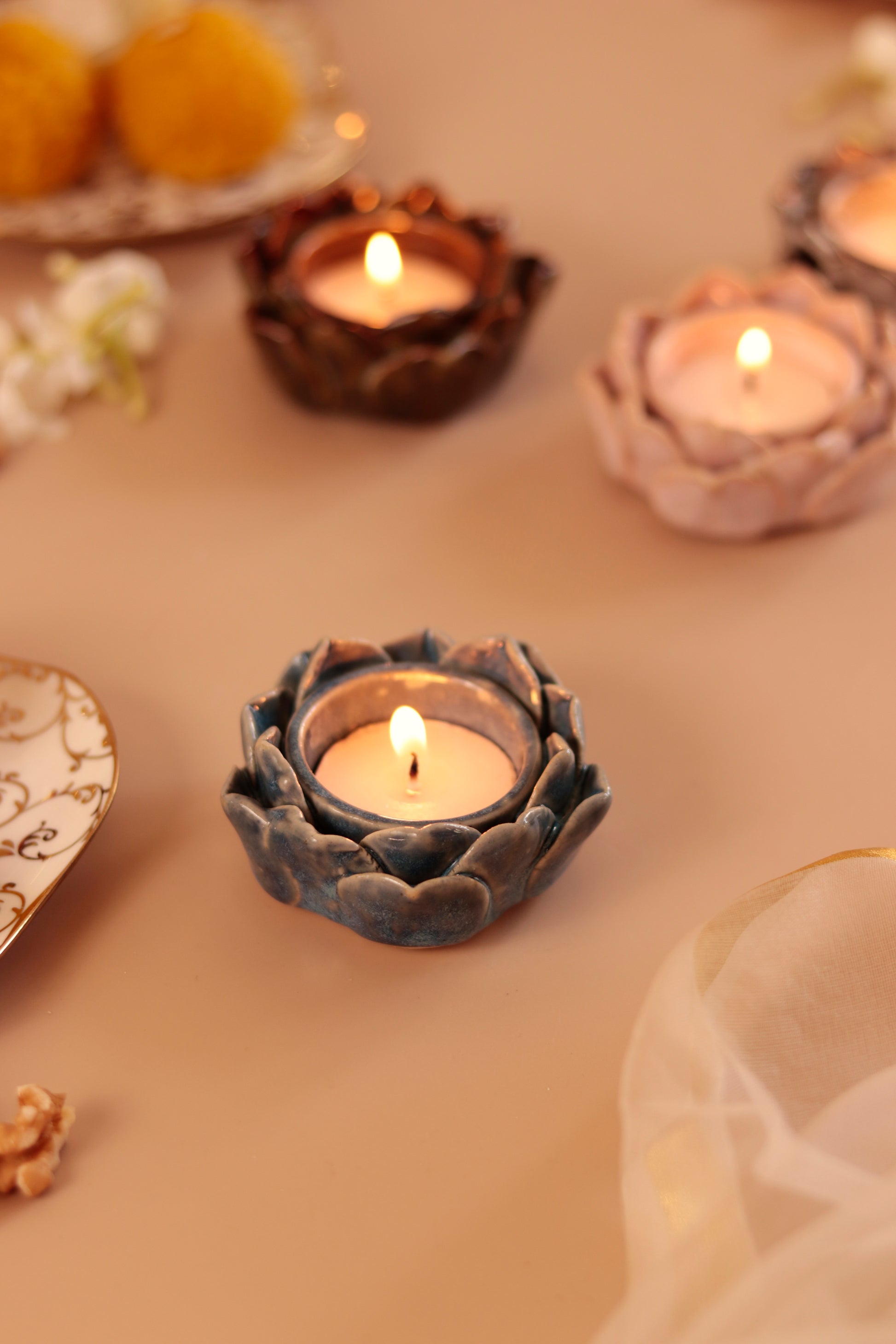 Studio Pottery Lotus Petal diya/Tea Light Holder (Set of 4)
