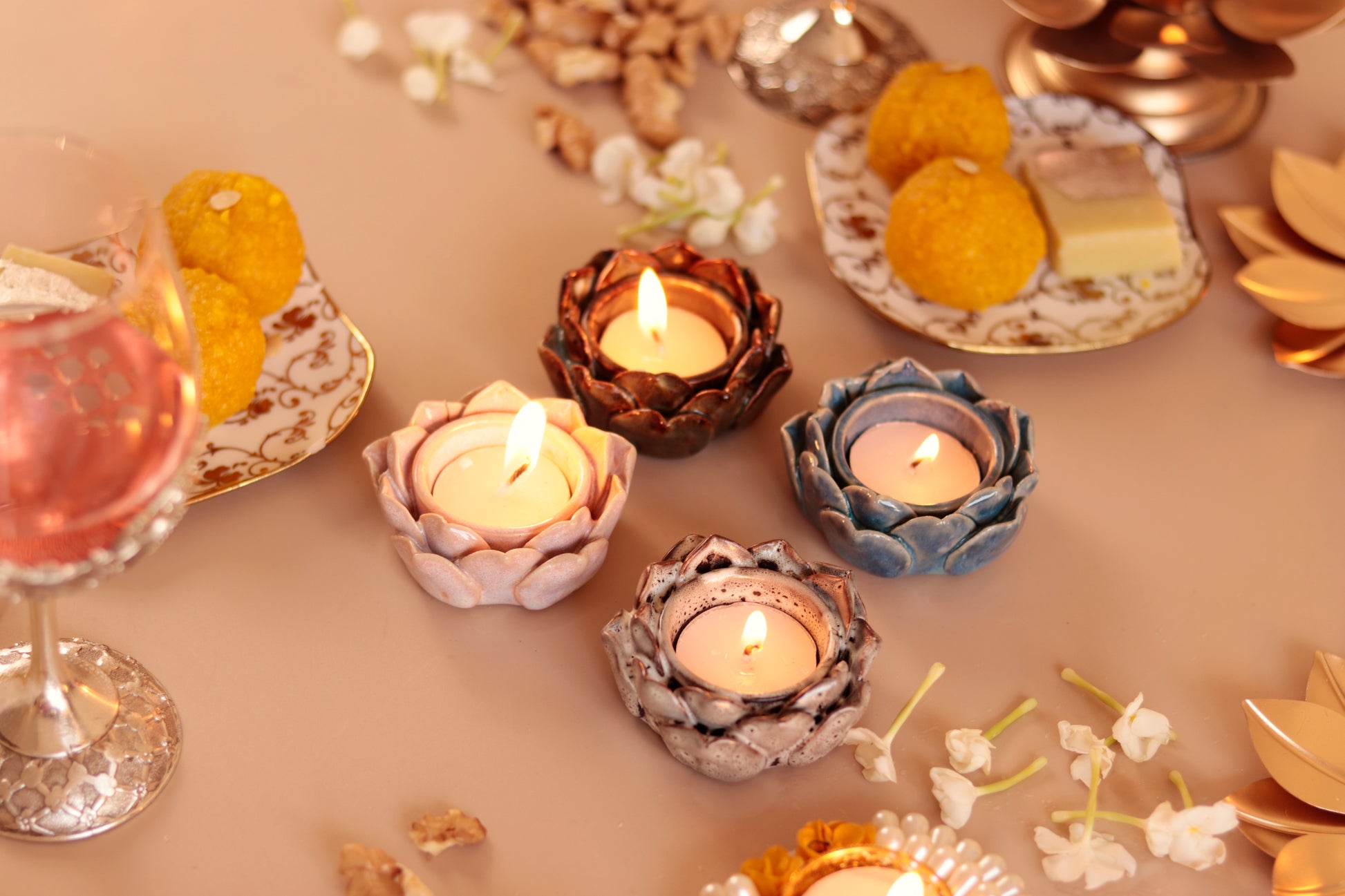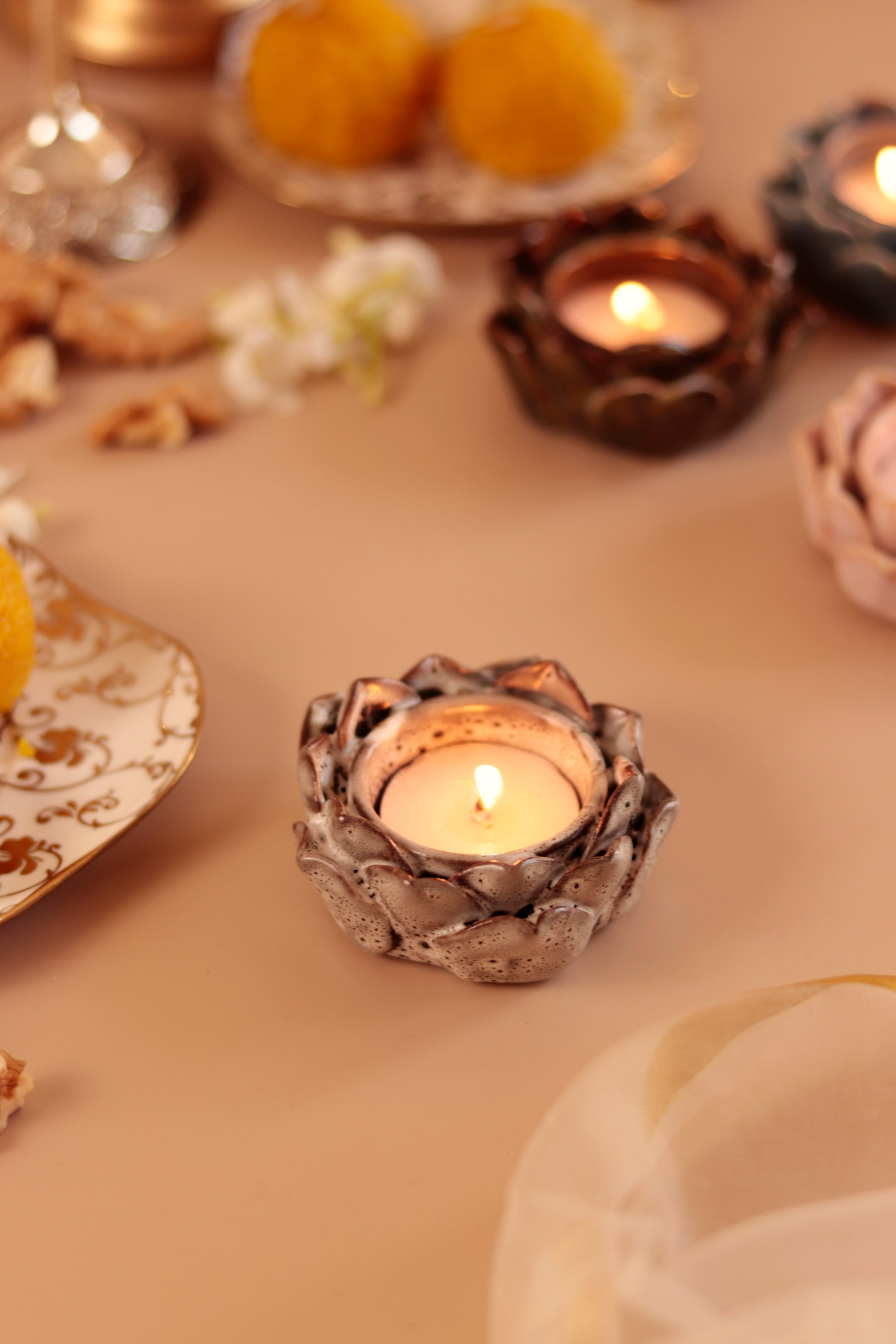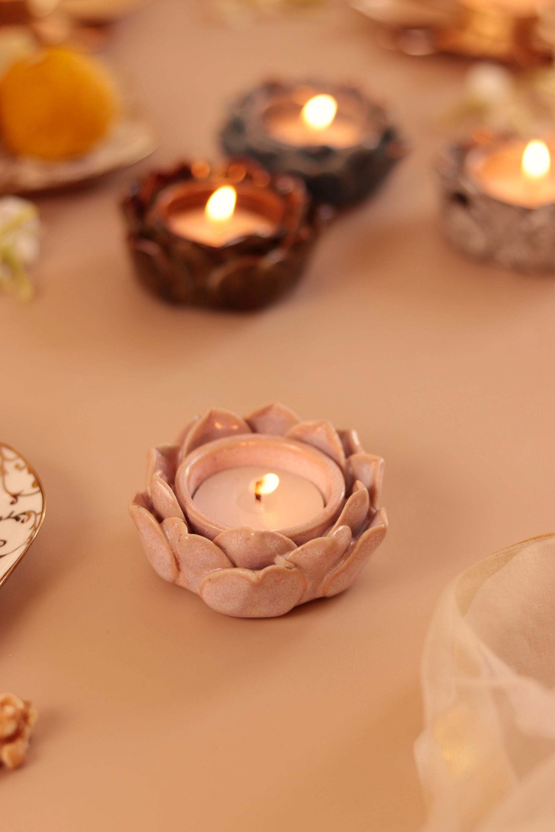 Studio Pottery Lotus Petal diya/Tea Light Holder (Set of 4)