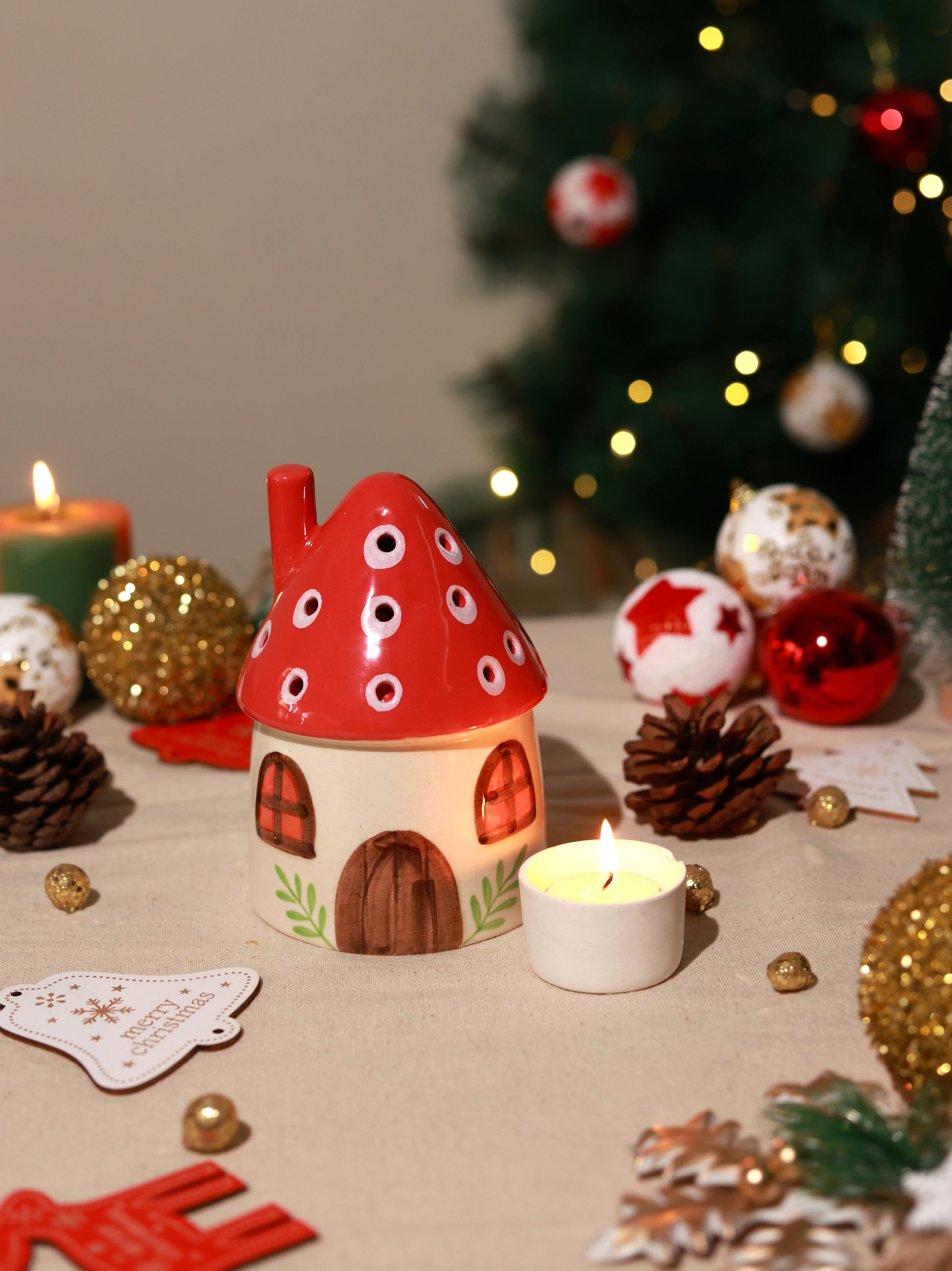 Handpainted Ceramic Hut T-light Holder