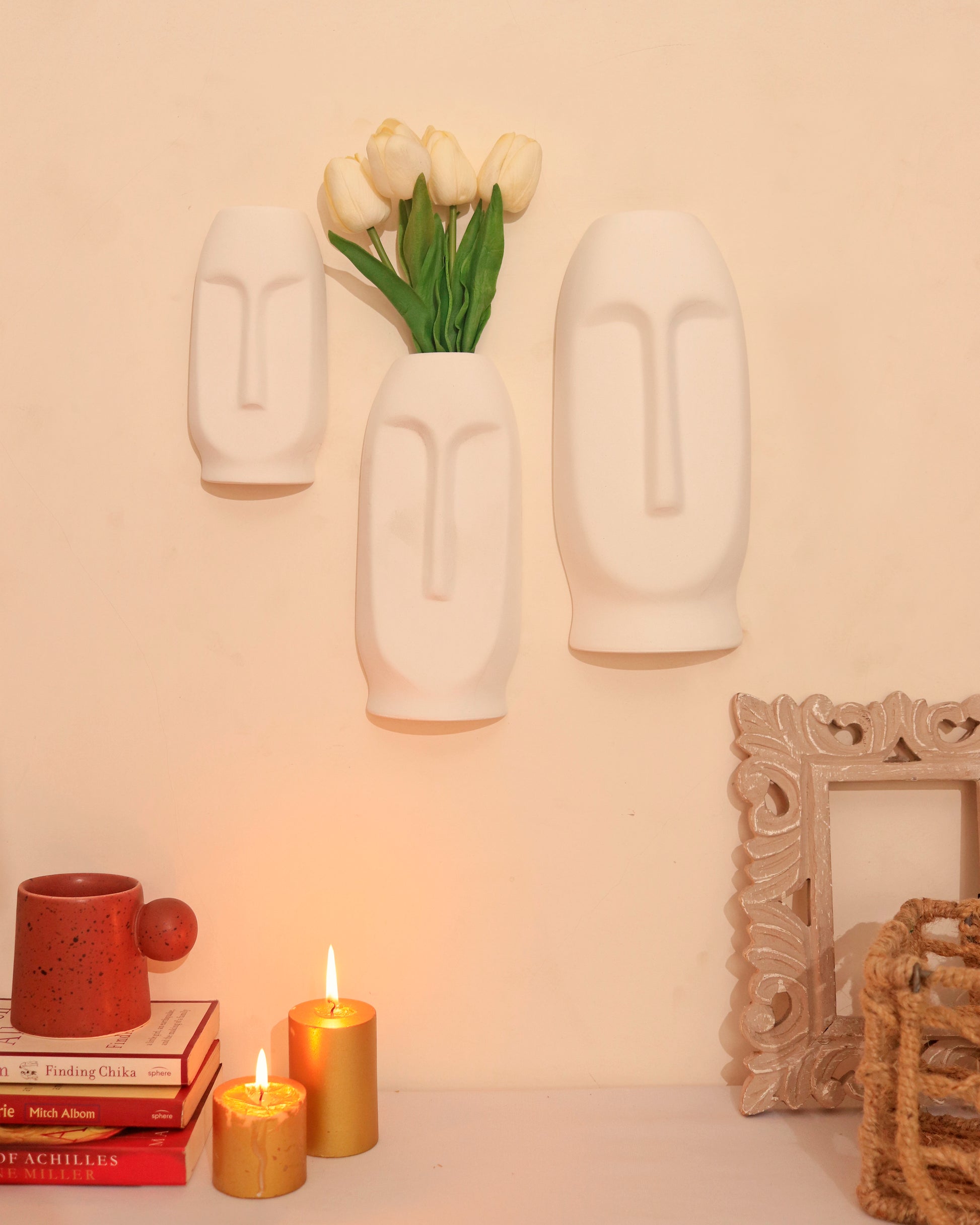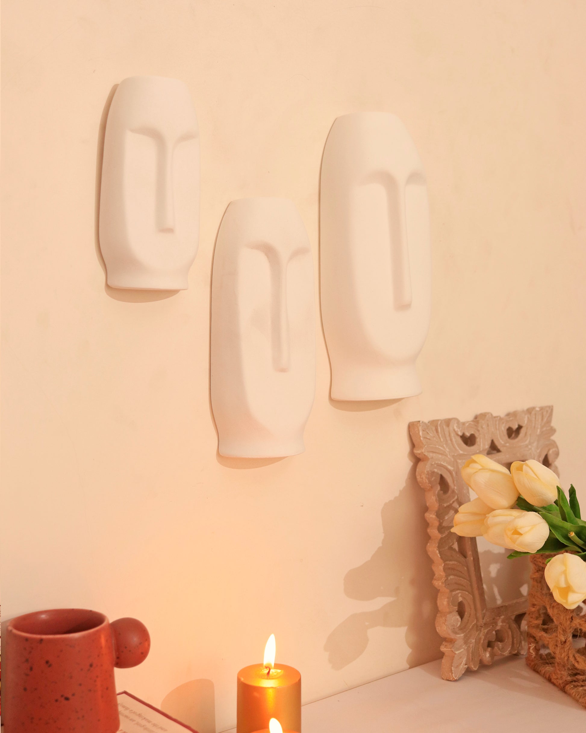 White Abstract Face Wall Mask (Set of 3)