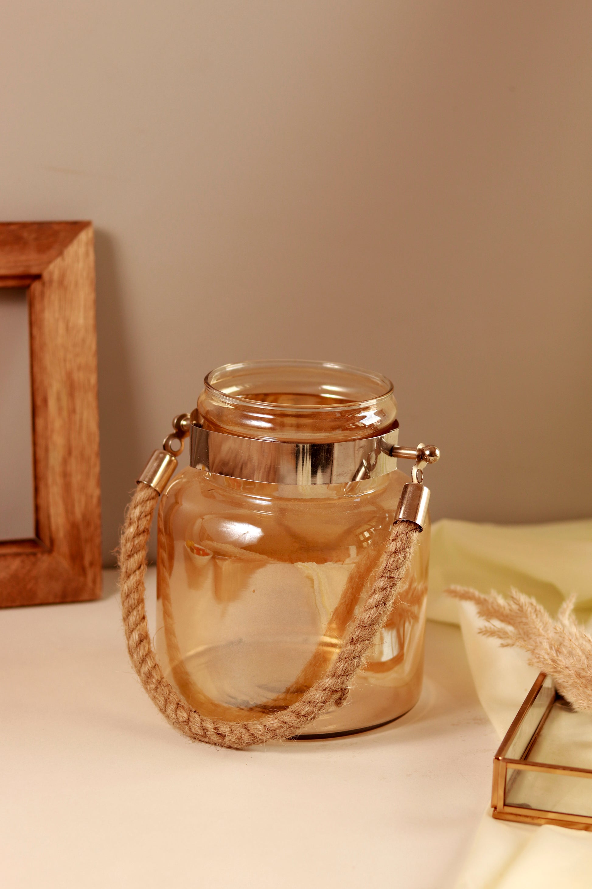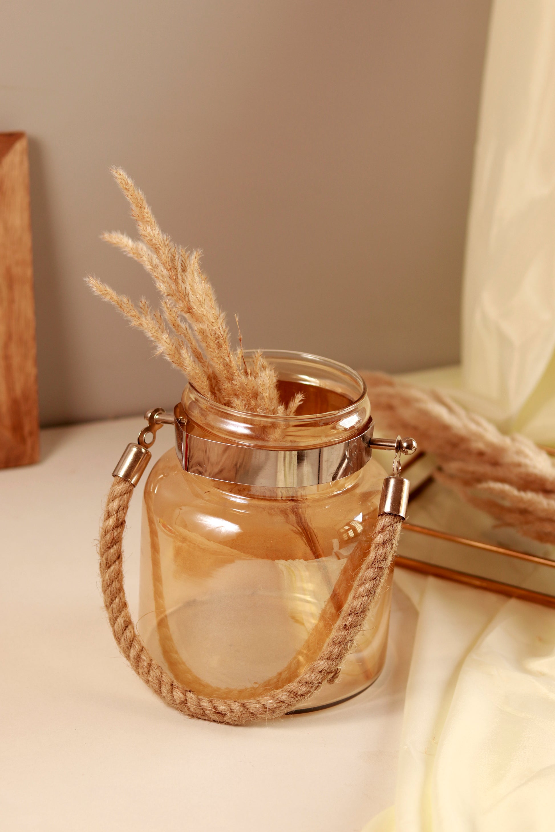 Glass Lantern Vase with jute handle