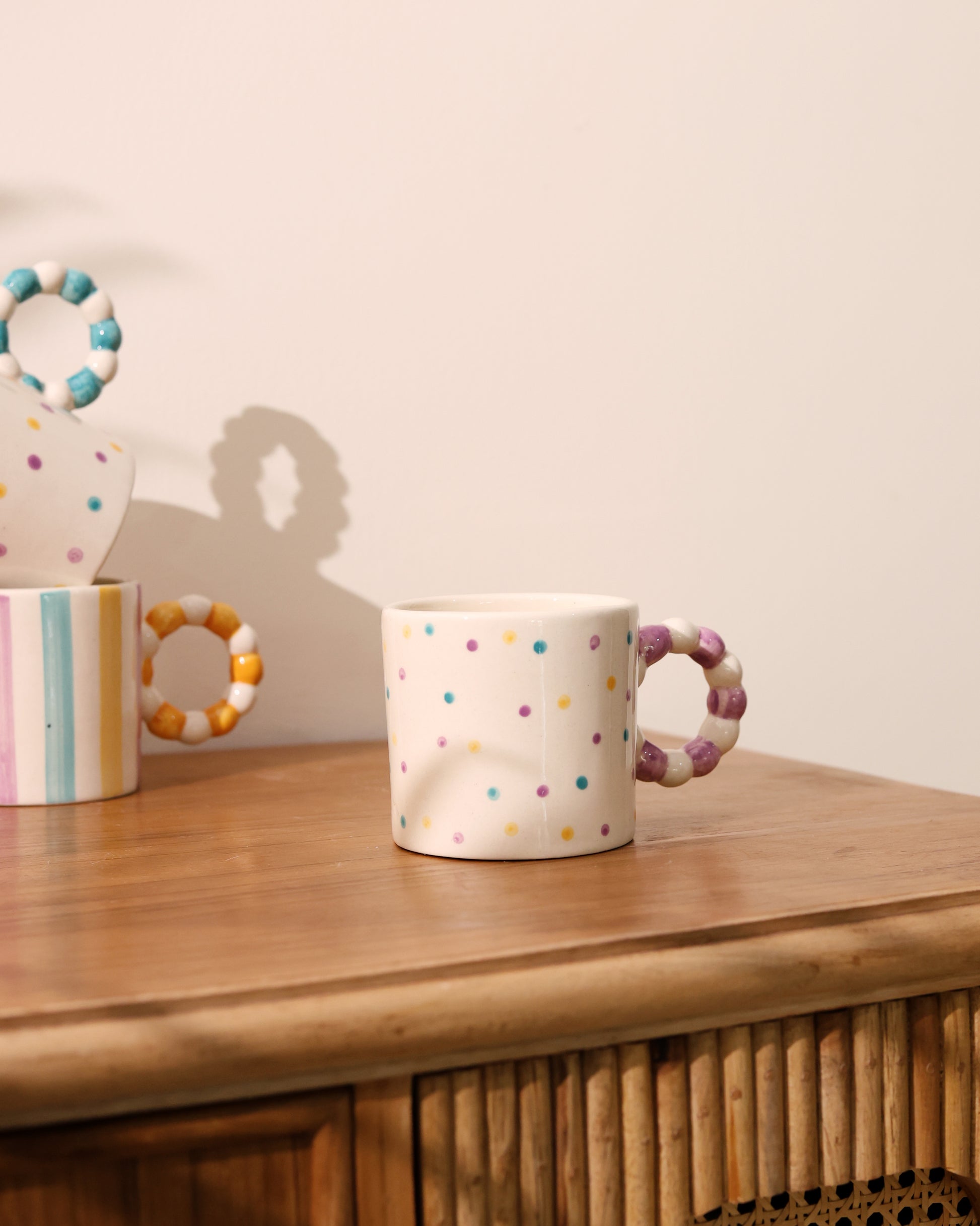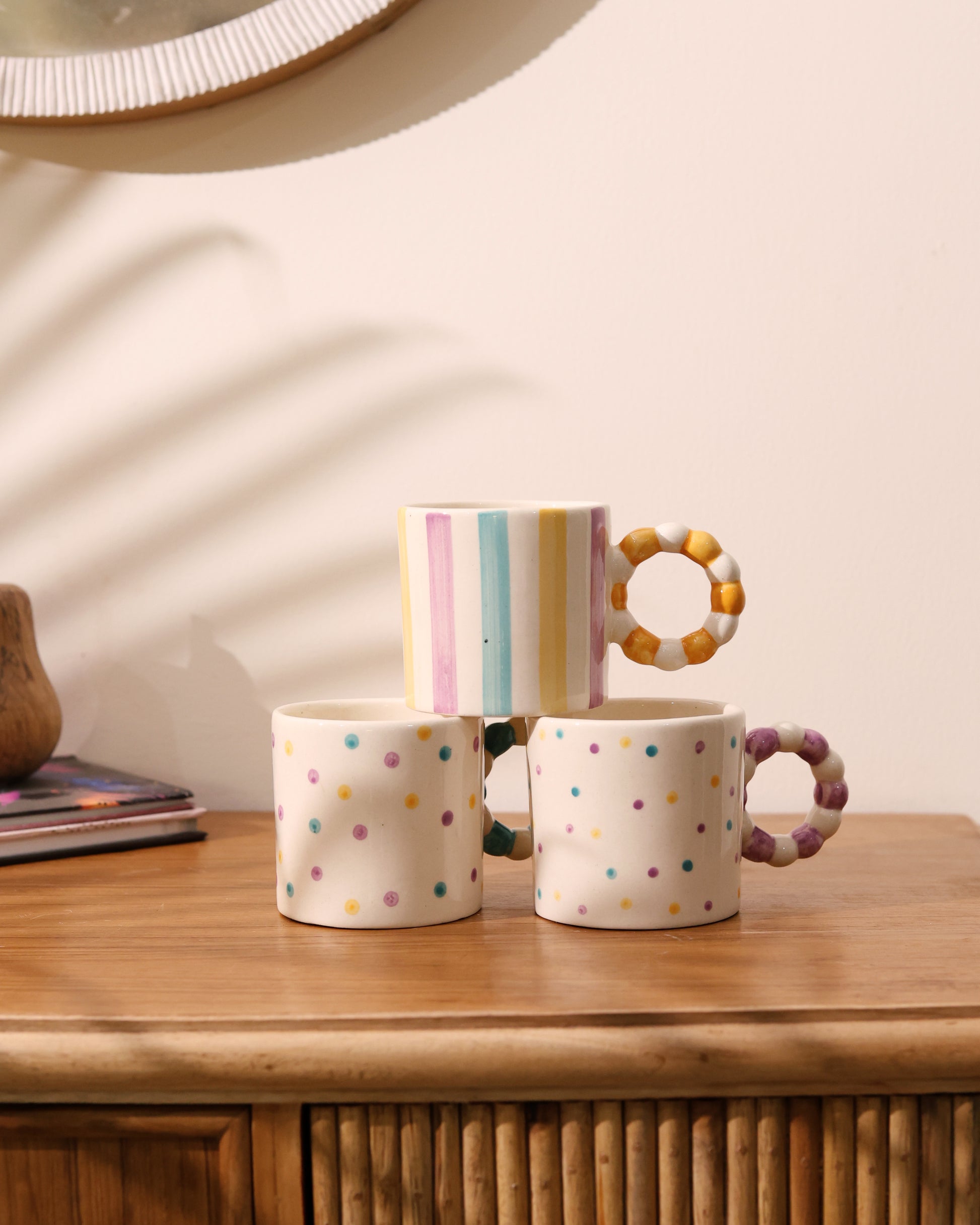 Elevate your beverage experience with our Candy Floss Mug featuring a playful striped design. The vibrant stripes add a fun and colorful touch to your coffee or tea time, making each sip a delight. Made from high-quality ceramic, this mug is both durable and stylish, perfect for brightening up your kitchen or office. Ideal for those who appreciate a touch of whimsy in their drinkware, the Candy Floss Mug from Craftribal combines charm and functionality for a joyful addition to your collection.