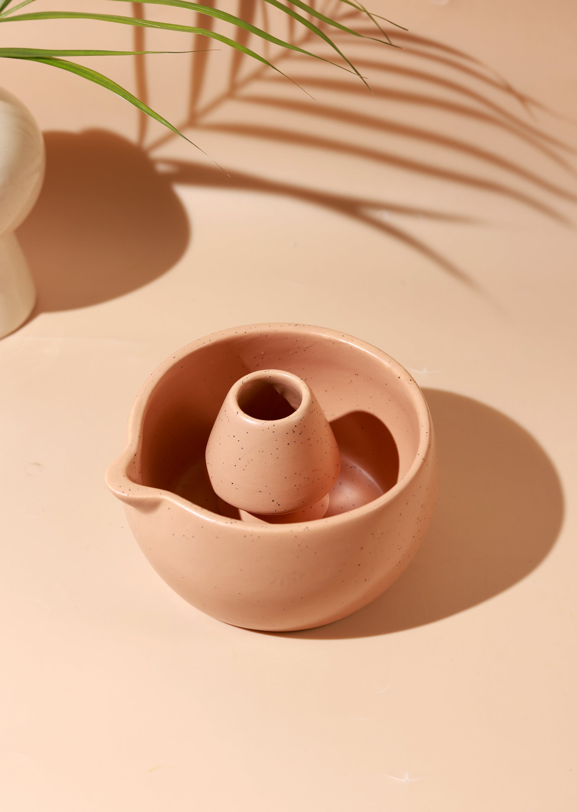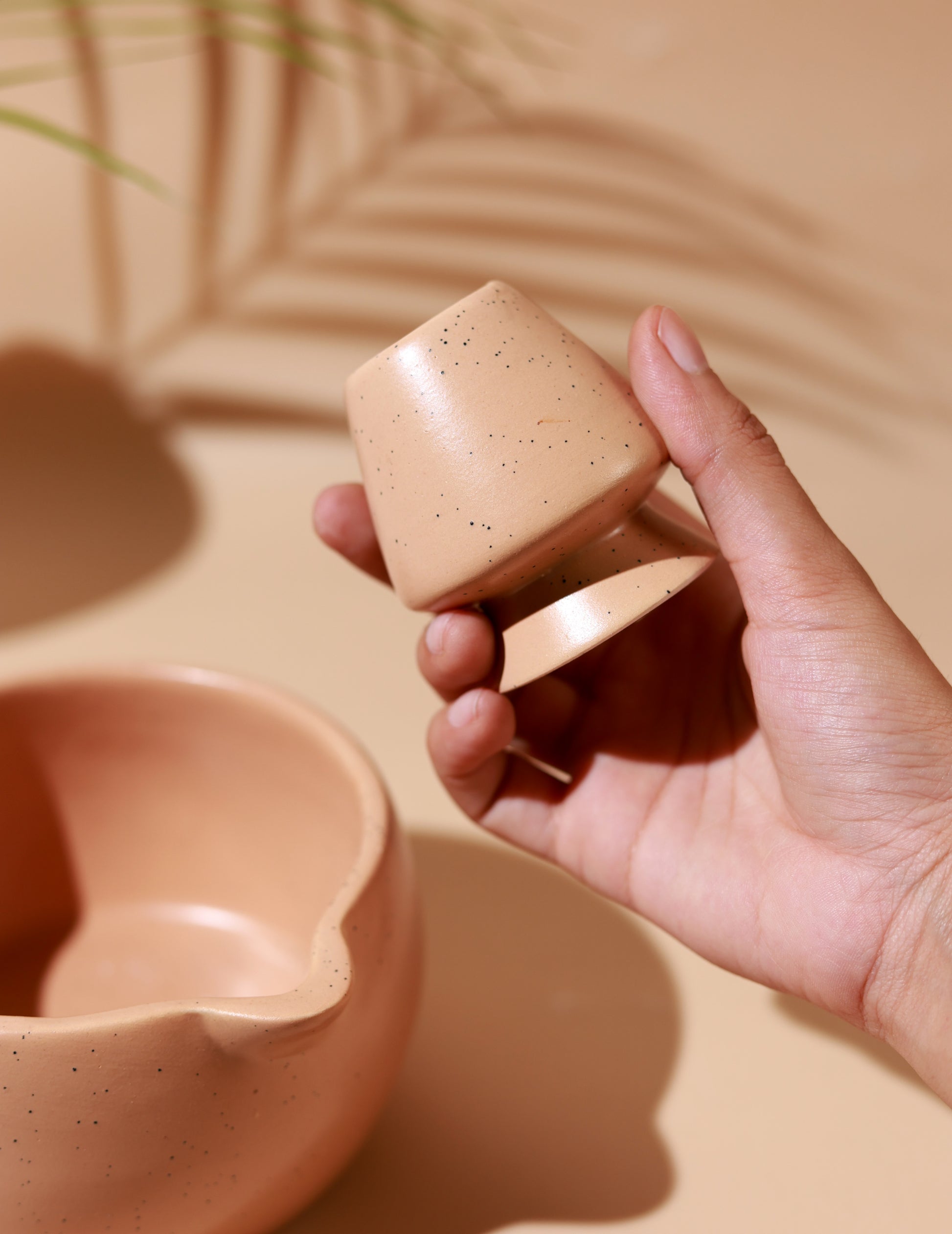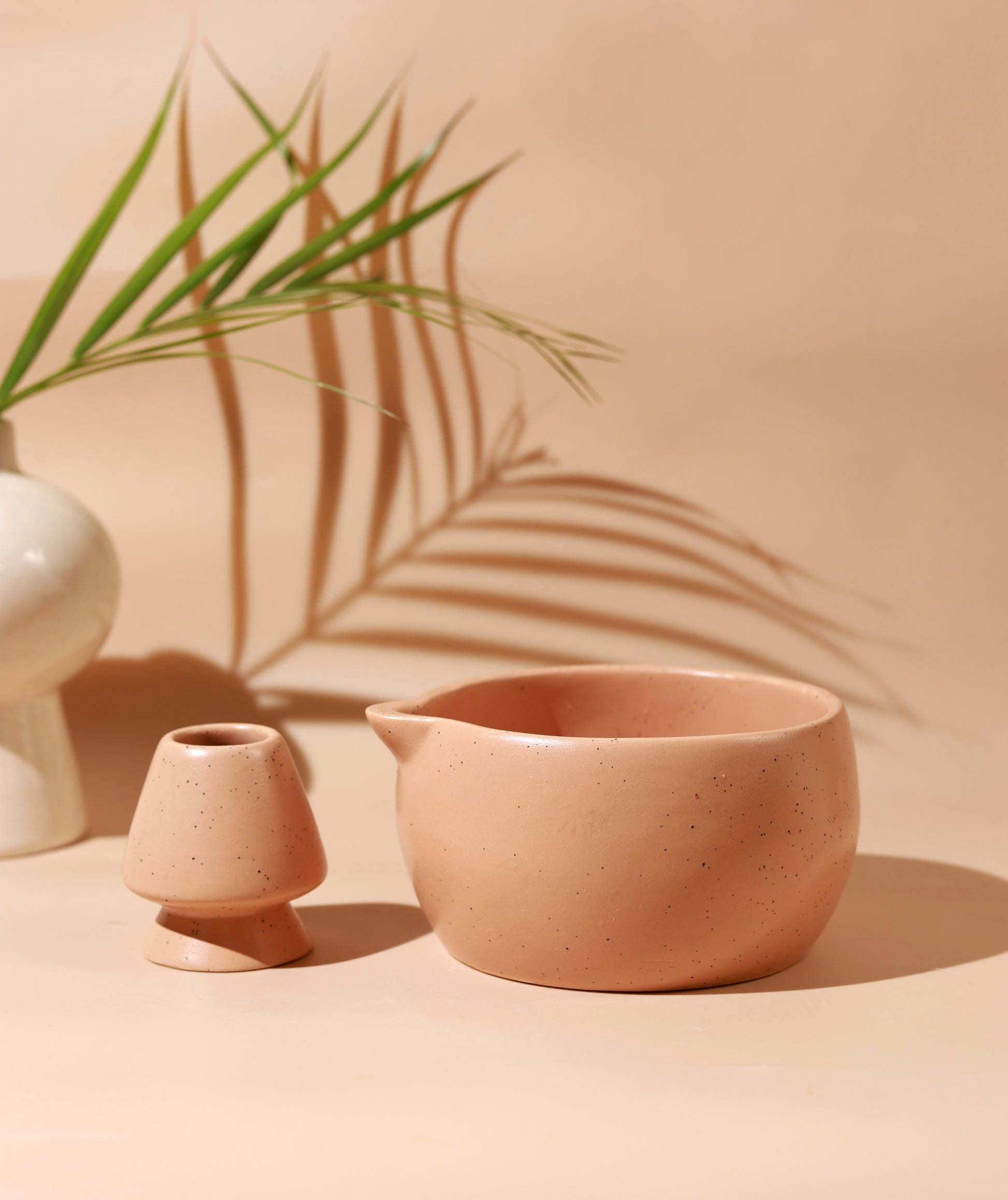 Solid Brown Matcha Bowl & Whisk Holder Set