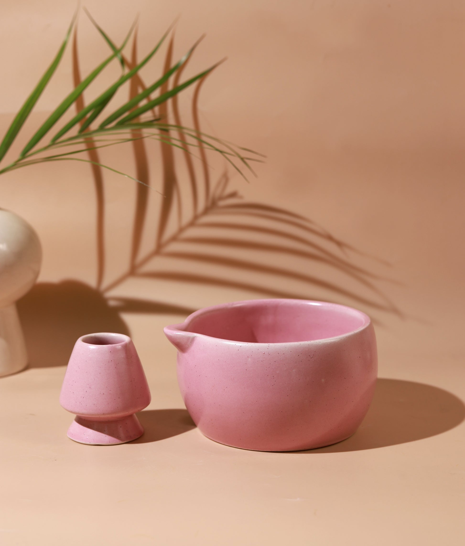 Solid Pink Matcha Bowl & Whisk Holder Set