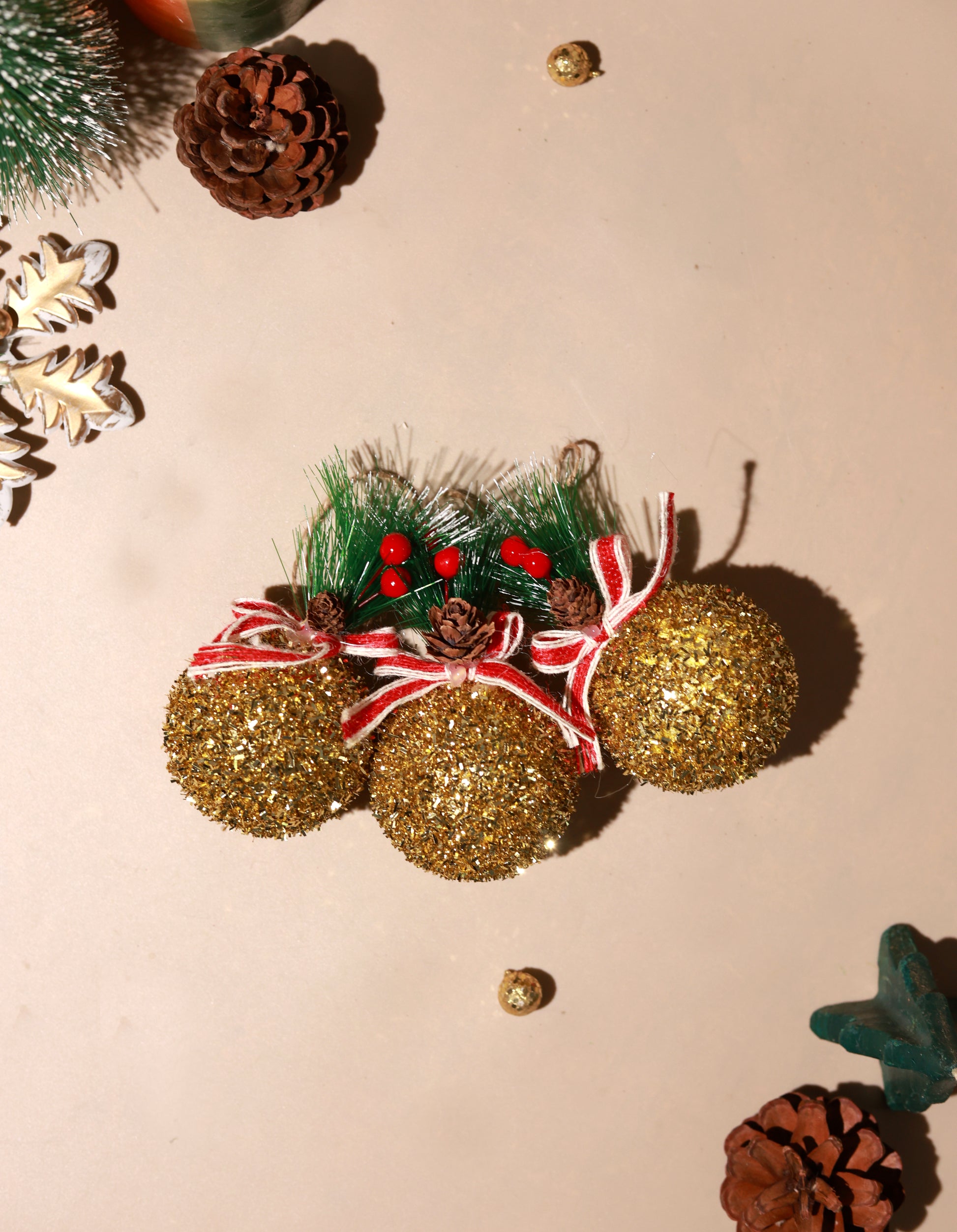 Golden Christmas Round Glitter ball Ornaments (Pack of 3)