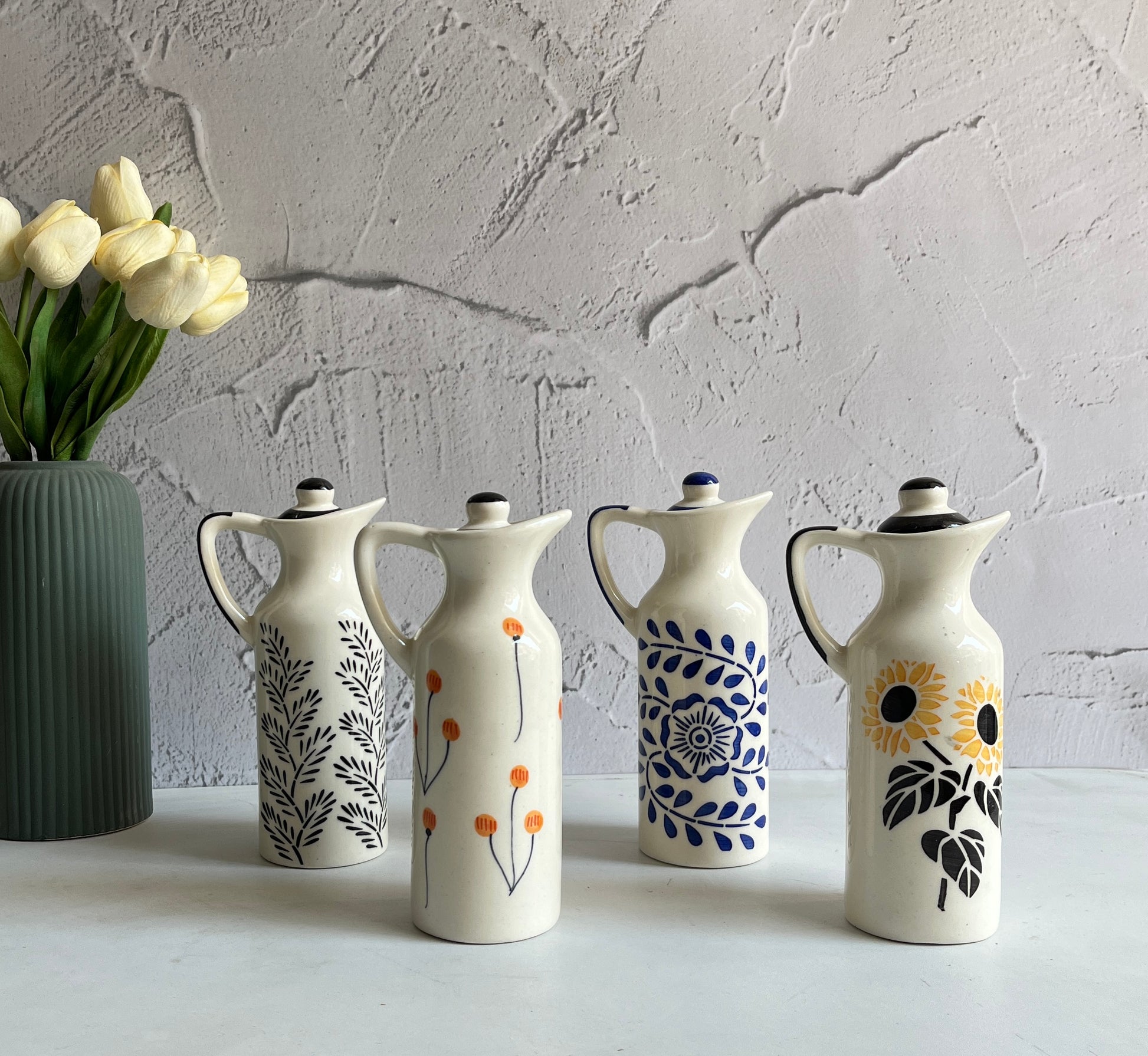 Hand Painted Oil Dispenser Bottle-Combo of 4