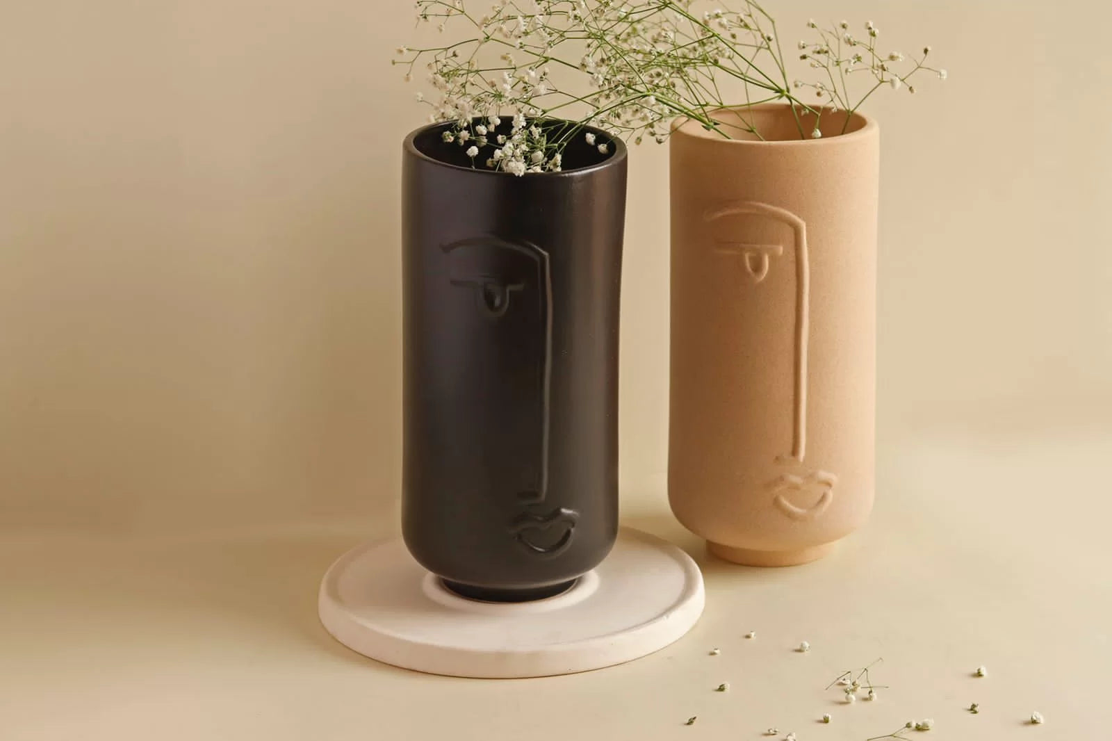 Line Art Ceramic Face Vase Beige