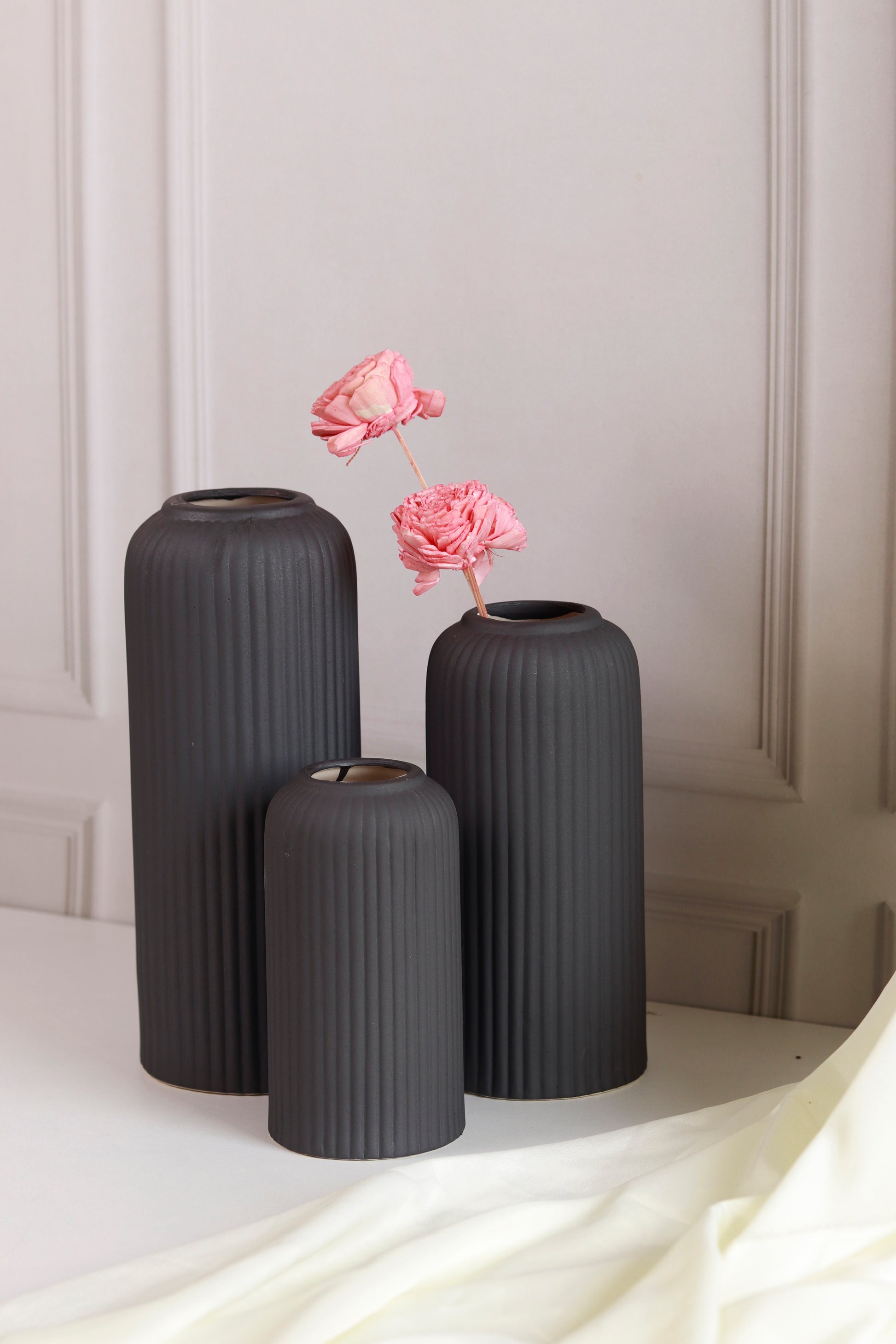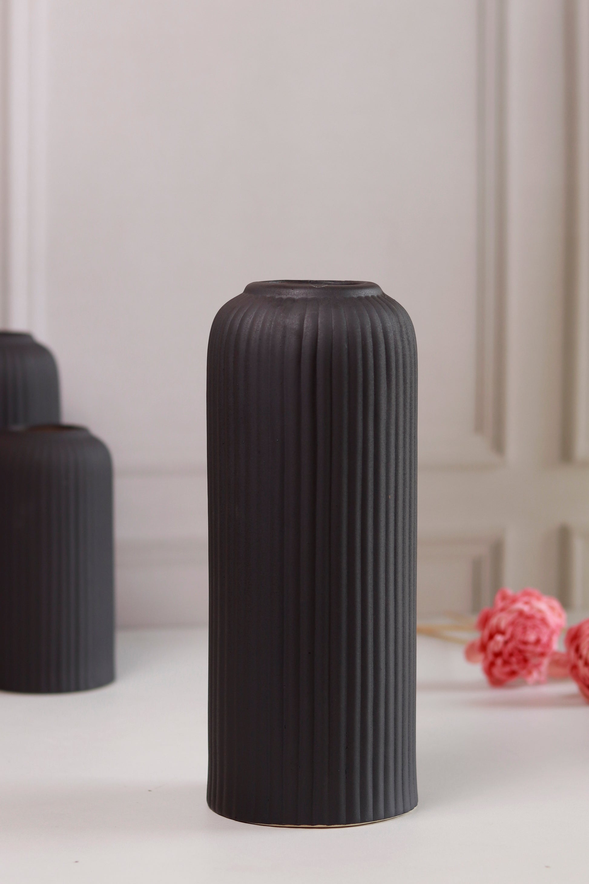Ribbed Vase- Black