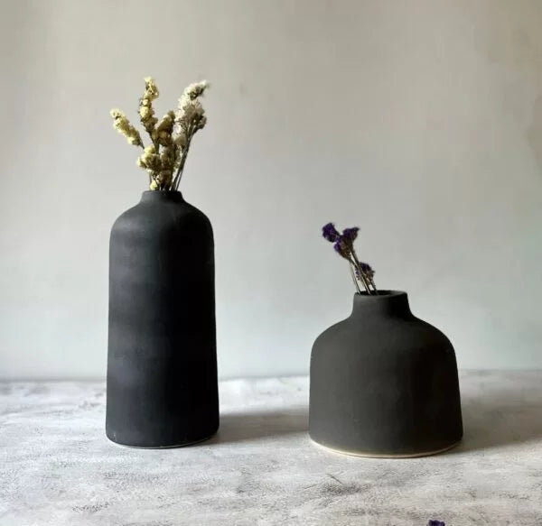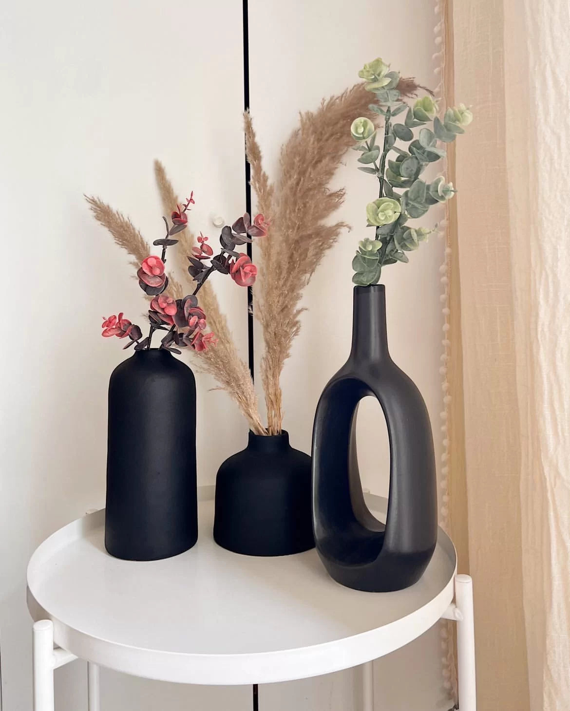 Package Inclusions- 1 Clay vase big, 1 Clay Vase Small and 1 hollow vase black