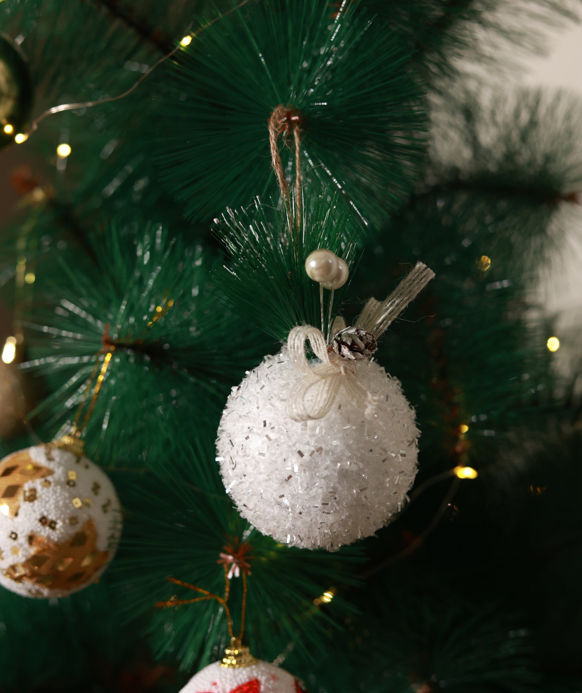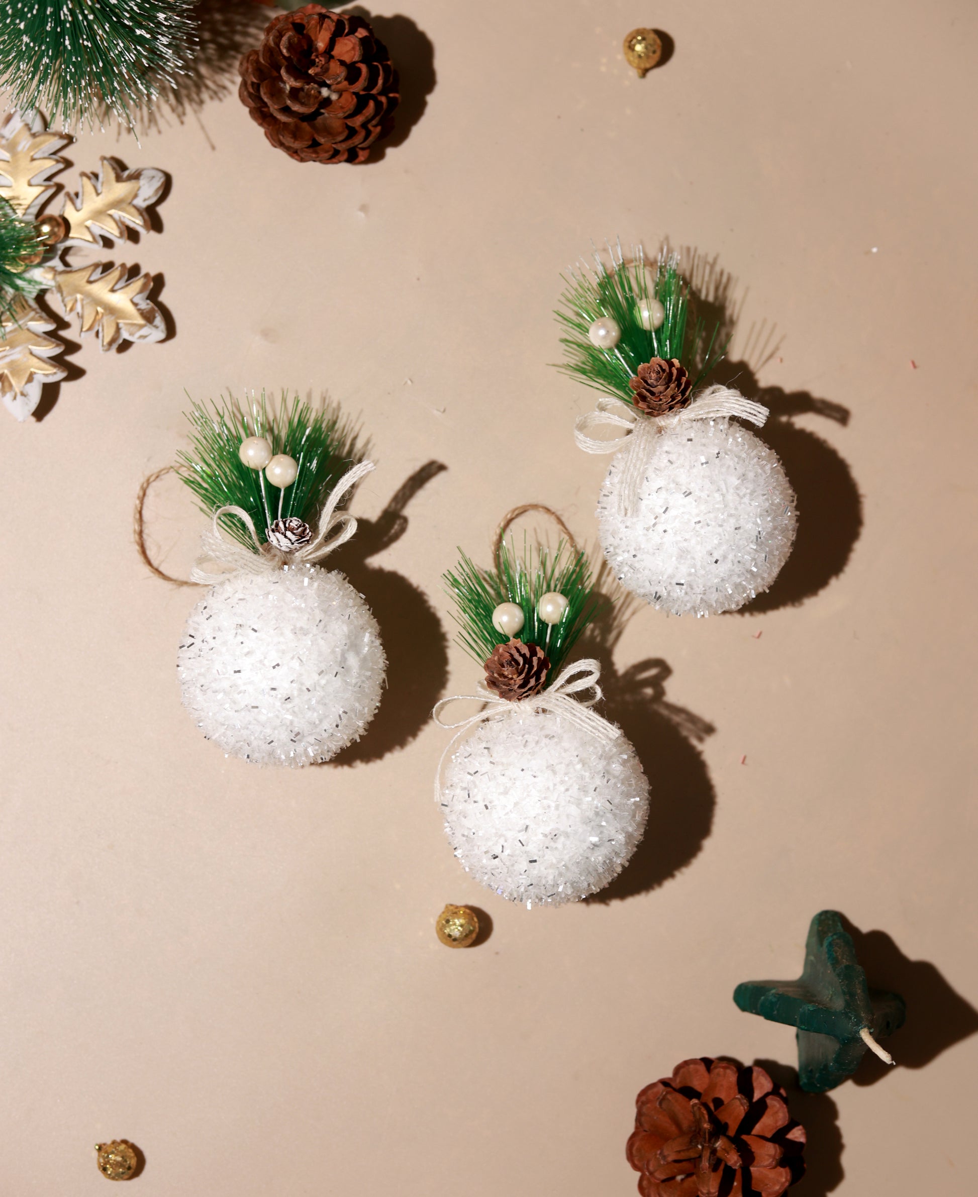 White Christmas Round Glitter ball Ornaments (Pack of 3)