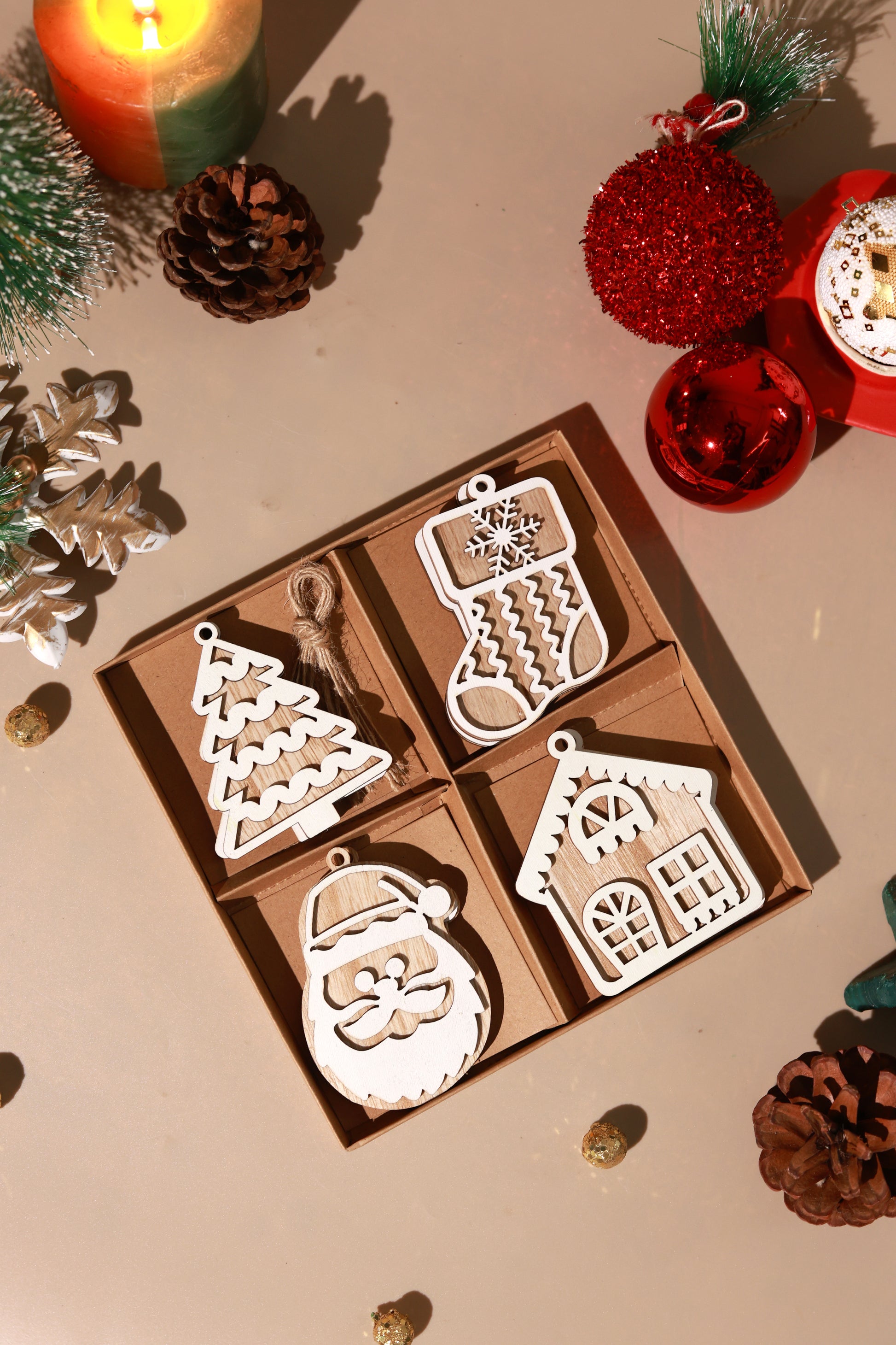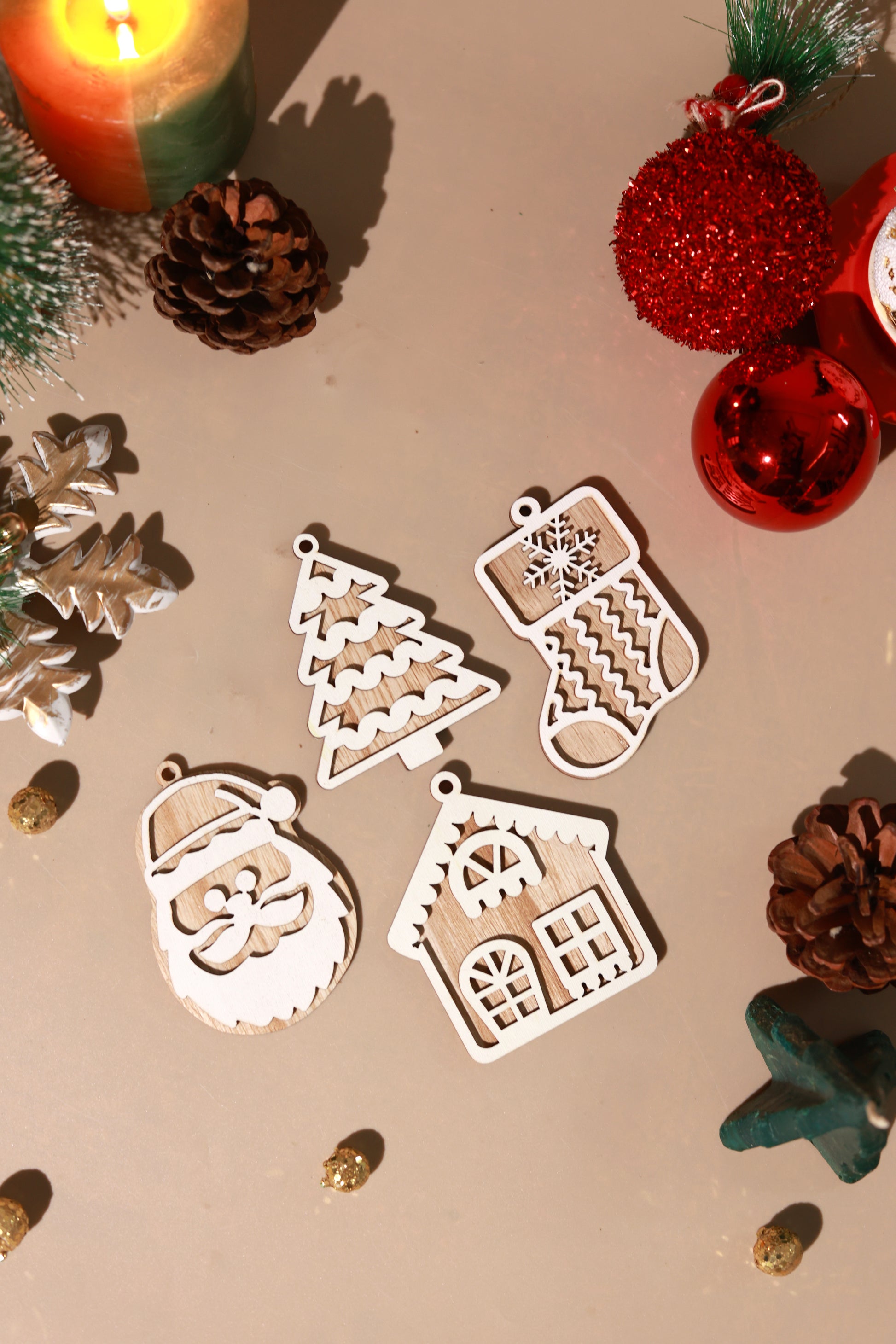 Wooden Engraved Christmas Ornaments (Pack of 8)