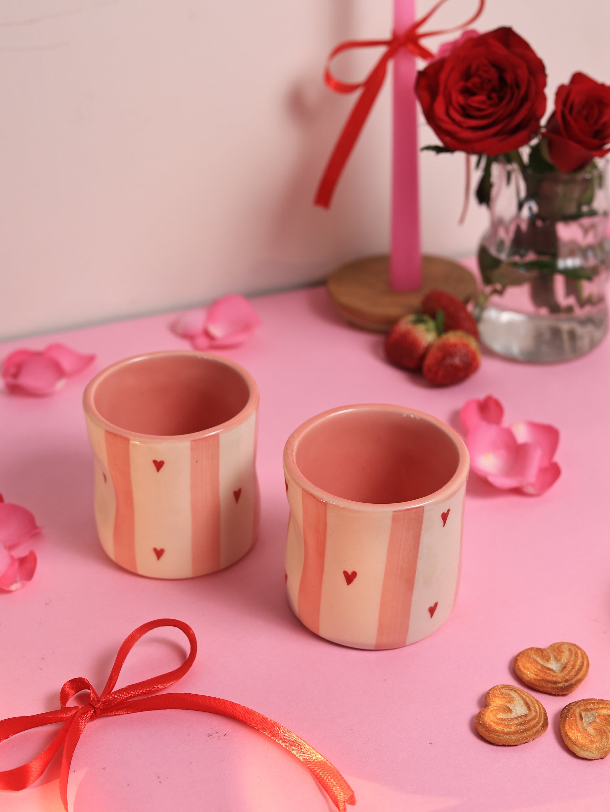 Fall in love with every sip using our Blush Stripes Love Mug, a cute, aesthetic and Pinterest-inspired handle-less ceramic mug designed for cozy coffee and chai moments. Featuring delicate hand-painted hearts and a soft blush tone, this mug brings warmth, charm and minimal romance to your everyday routine.