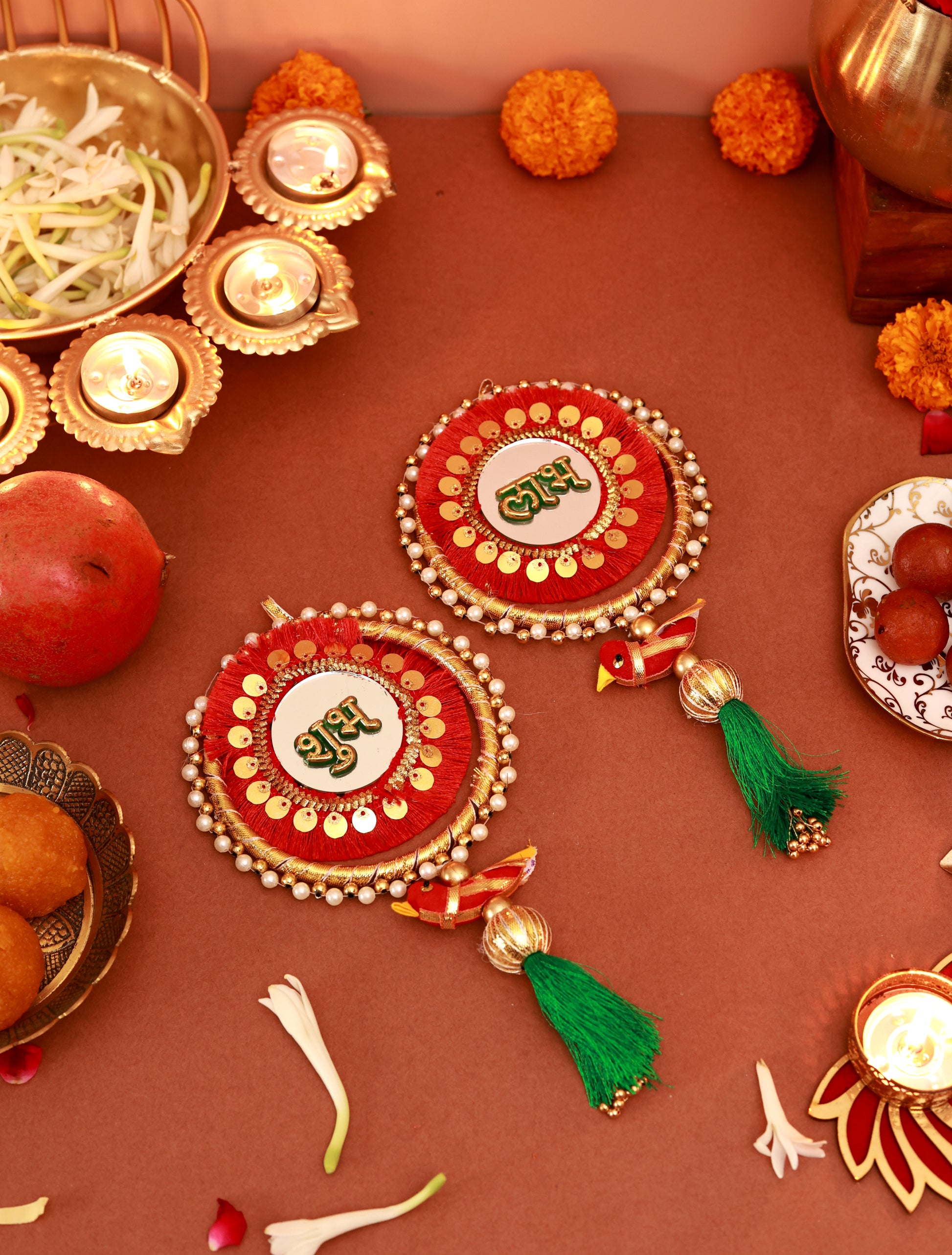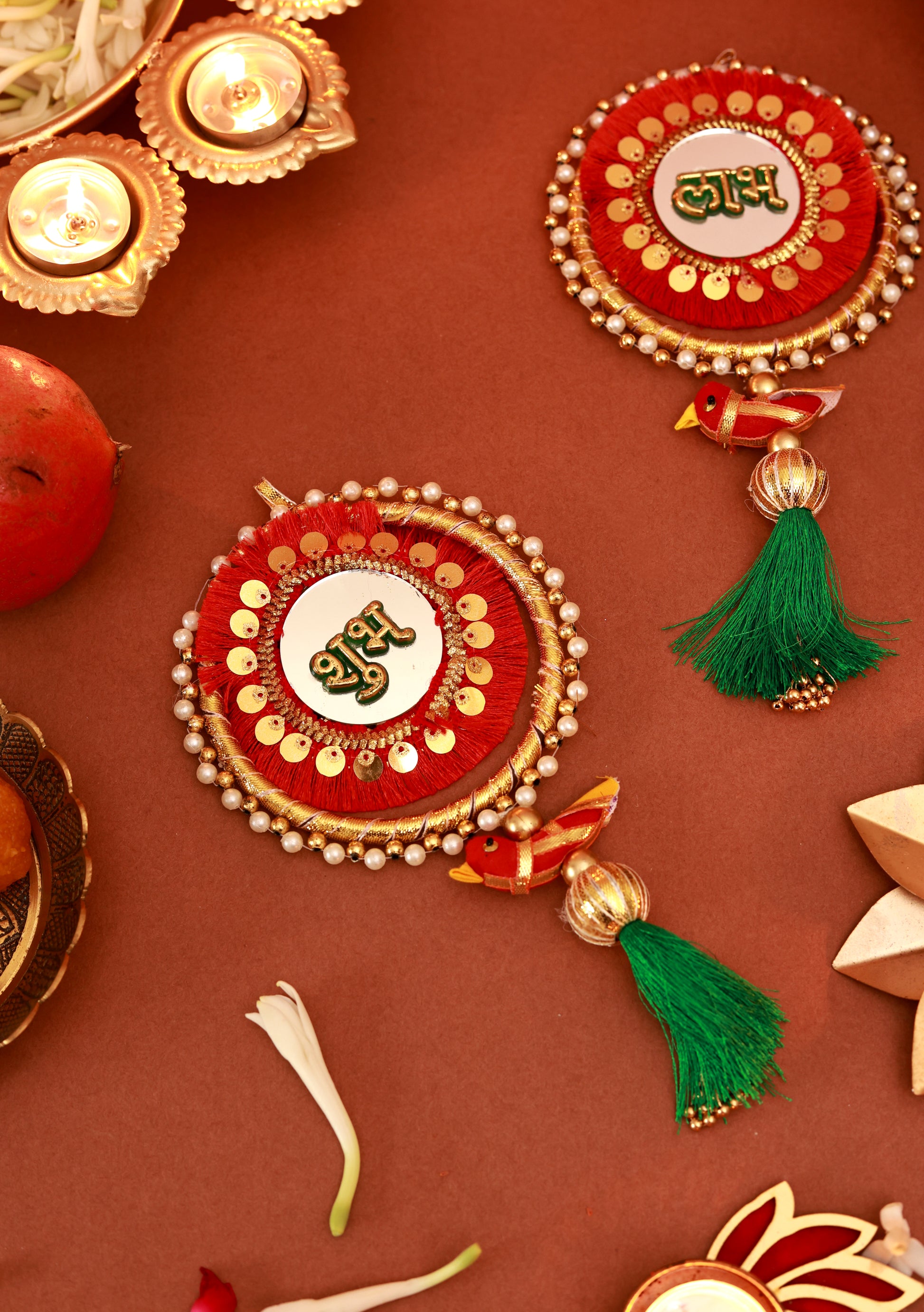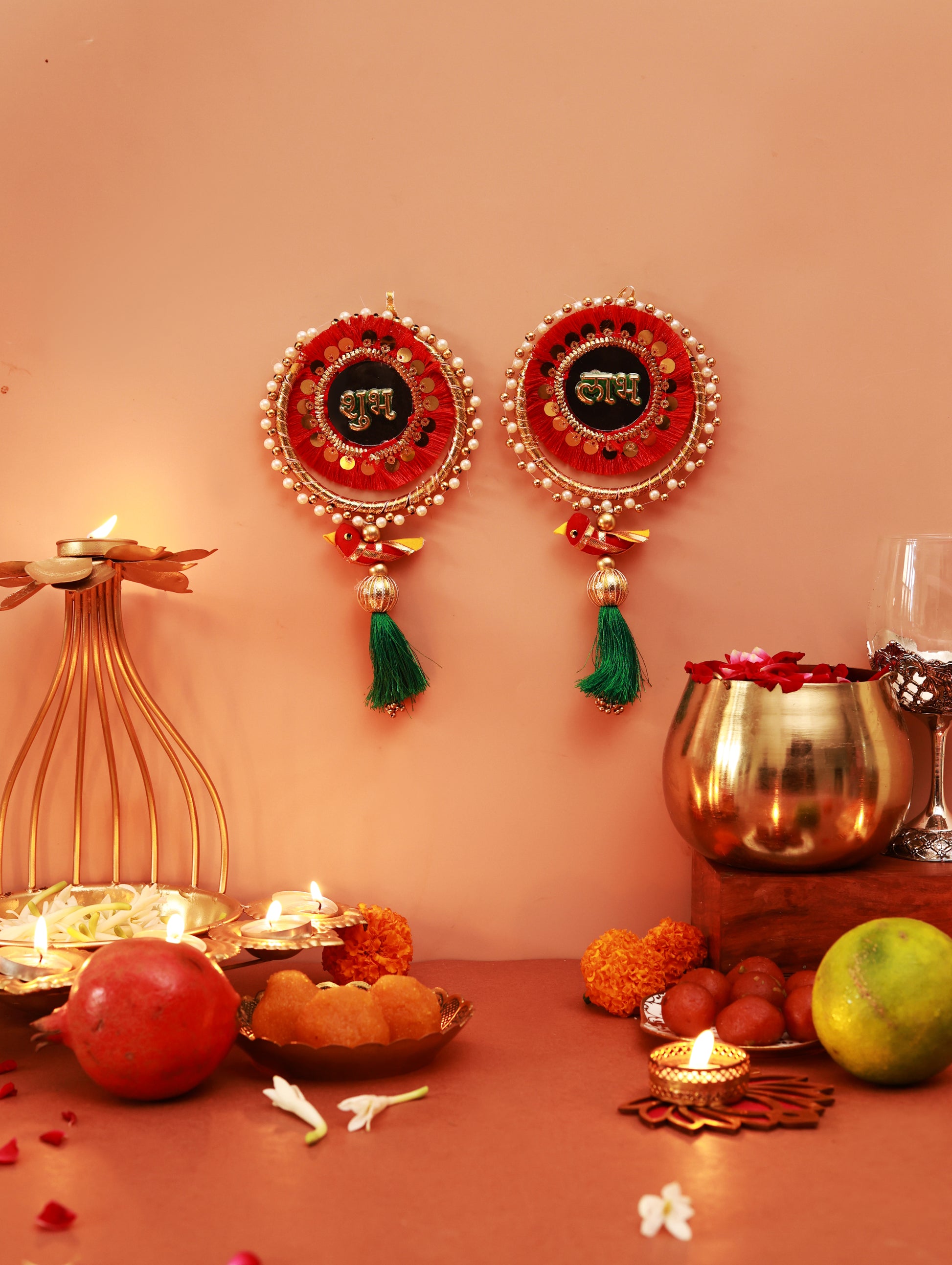 Handmade Red 'SHUBH-LABH' Festive Wall Hanging (set of 2)