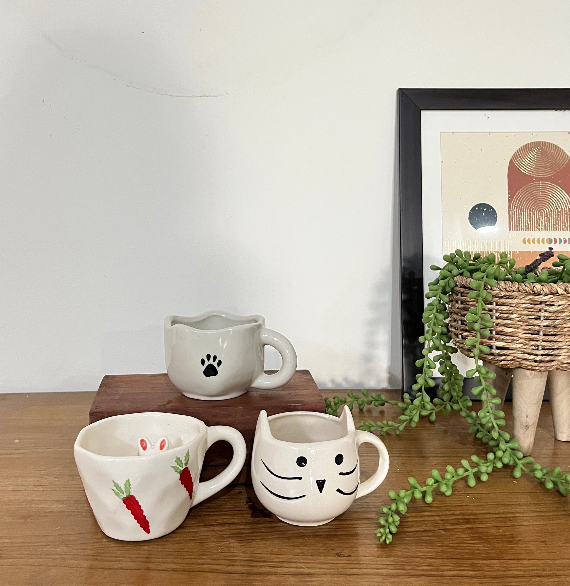 Meet the Bunny, Kitty & Paw Cup Set an adorable trio of handmade ceramic mugs featuring a sweet bunny cup, a playful cat cup, and a charming paw-print cup. Lovingly crafted by skilled artisans, this pottery made in India brings warmth and personality to your daily sips. These affordable ceramic mugs are microwave and dishwasher safe, making them perfect for everyday use. With their cute animal-inspired designs, they make ideal cute gifts for animal lovers and are sure to brighten up any shelf. Soft, whimsical, and totally Pinteresty and Insta-worthy this set is a must-have for cozy mornings and cuddly vibes.